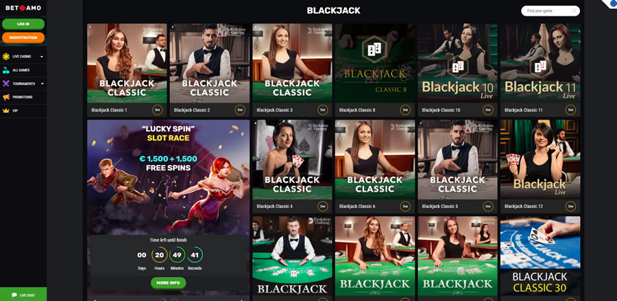 Liefhebbers van het spel blackjack zijn bij dit casino aan het goede adres. Met meer dan 140 verschillende blackjack tafels kan je er volop actie vinden. Het merendeel van de blackjack tafels vind je terug in het live casino, waar je live blackjack speelt met echte dealers.